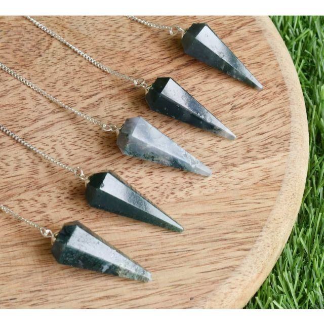 หินโมราคริสตัลมอสส์อัญมณีจักระลูกตุ้มธรรมชาติสำหรับการรักษาตัวมาสคอตของแท้