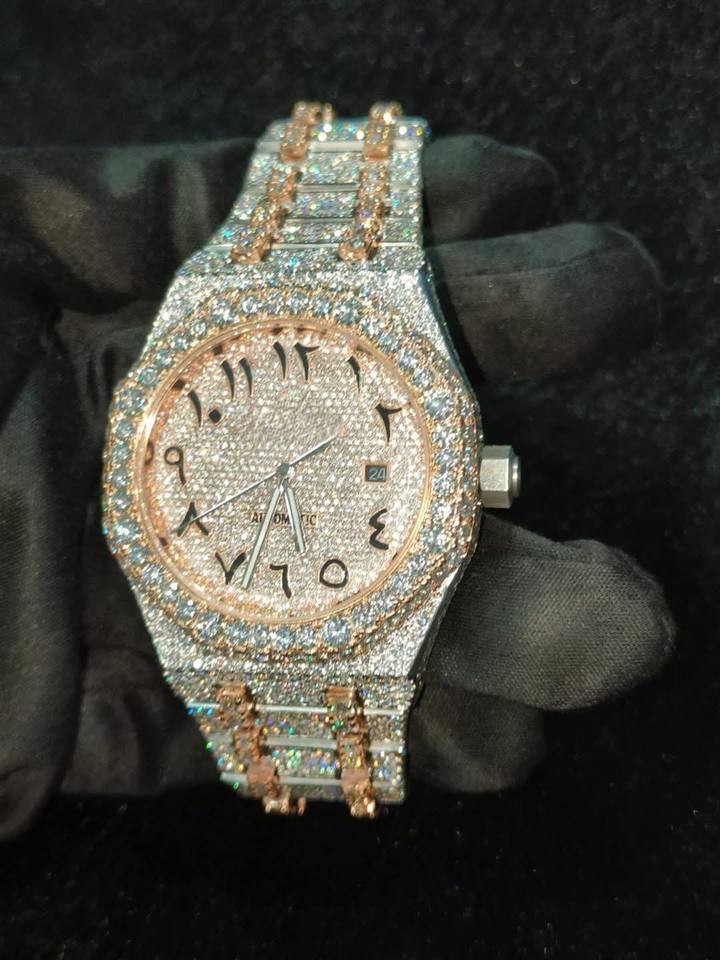 นาฬิกา Mossinate สแตนเลสสตีล VVS มอยส์ซาไนต์ นาฬิกาจักรกลเพชร ผู้ชาย ฮิปฮอป บัสดาวน์ ผ่านการทดสอบเพชร 100%