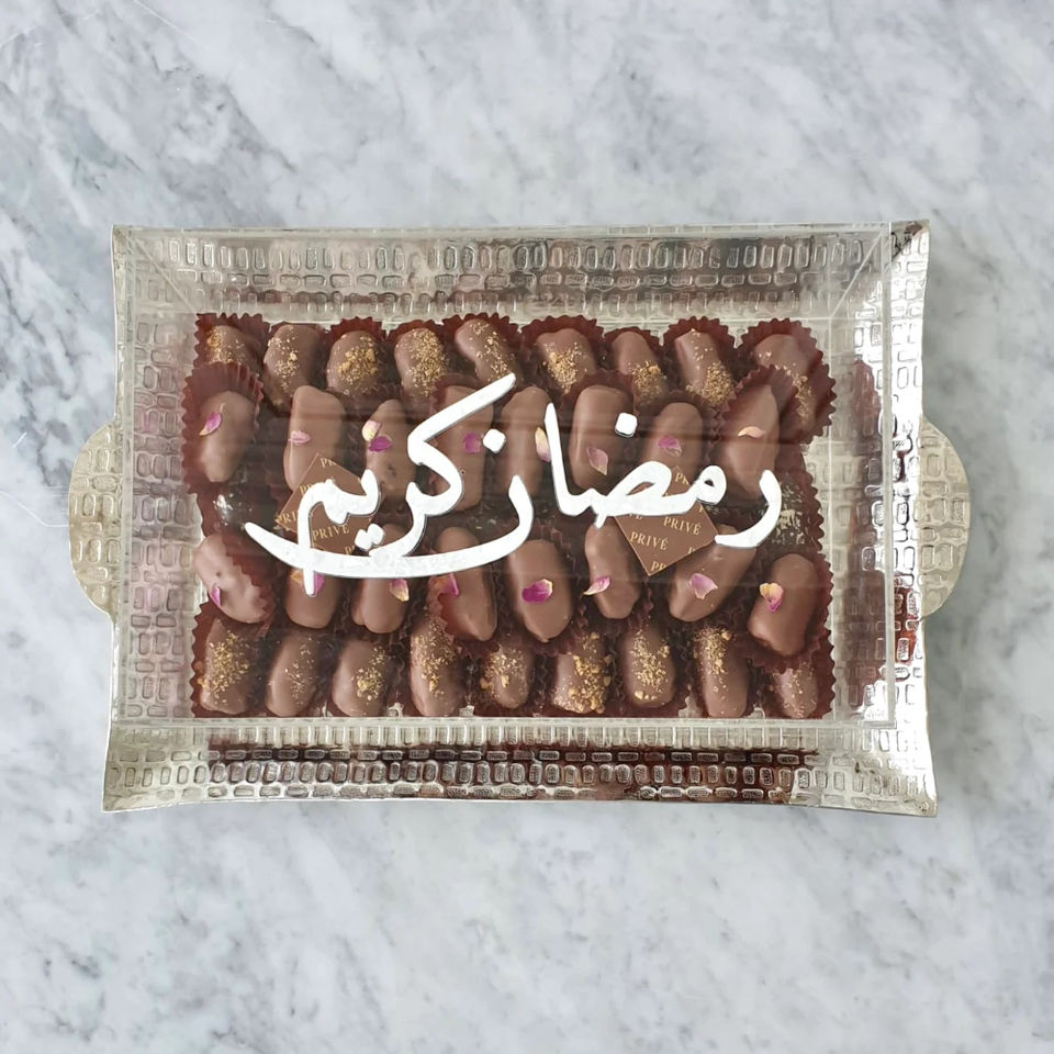 ถาดเสิร์ฟขนมและช็อคโกแลตโลหะที่น่ารักที่สุดที่มีคุณภาพสูงพร้อมฝาปิดอะคริลิคสีเงินปลอดภัยสำหรับอาหาร
