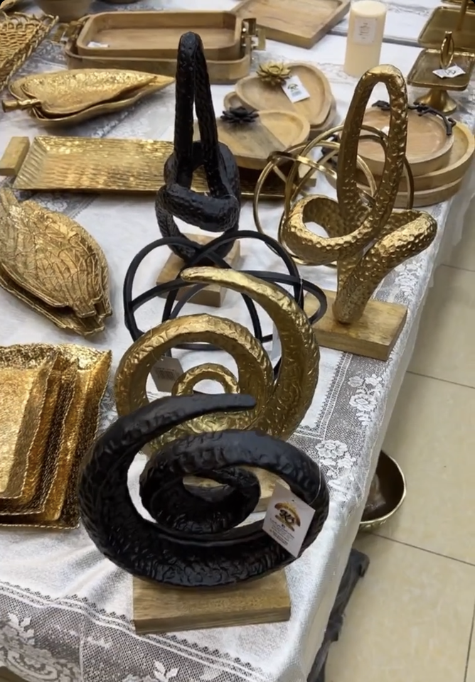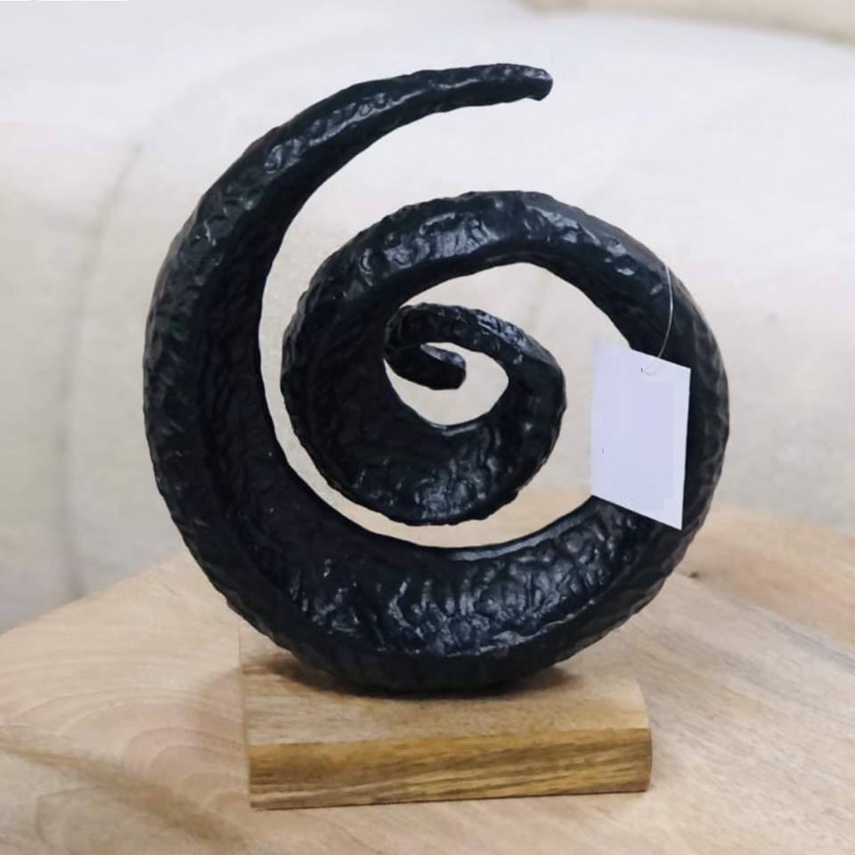 รูปปั้นอลูมิเนียมรูปทรงโค้งมนที่น่าตื่นตาตื่นใจที่สุดรูปปั้นโลหะที่มีสีดำเสร็จและฐานไม้