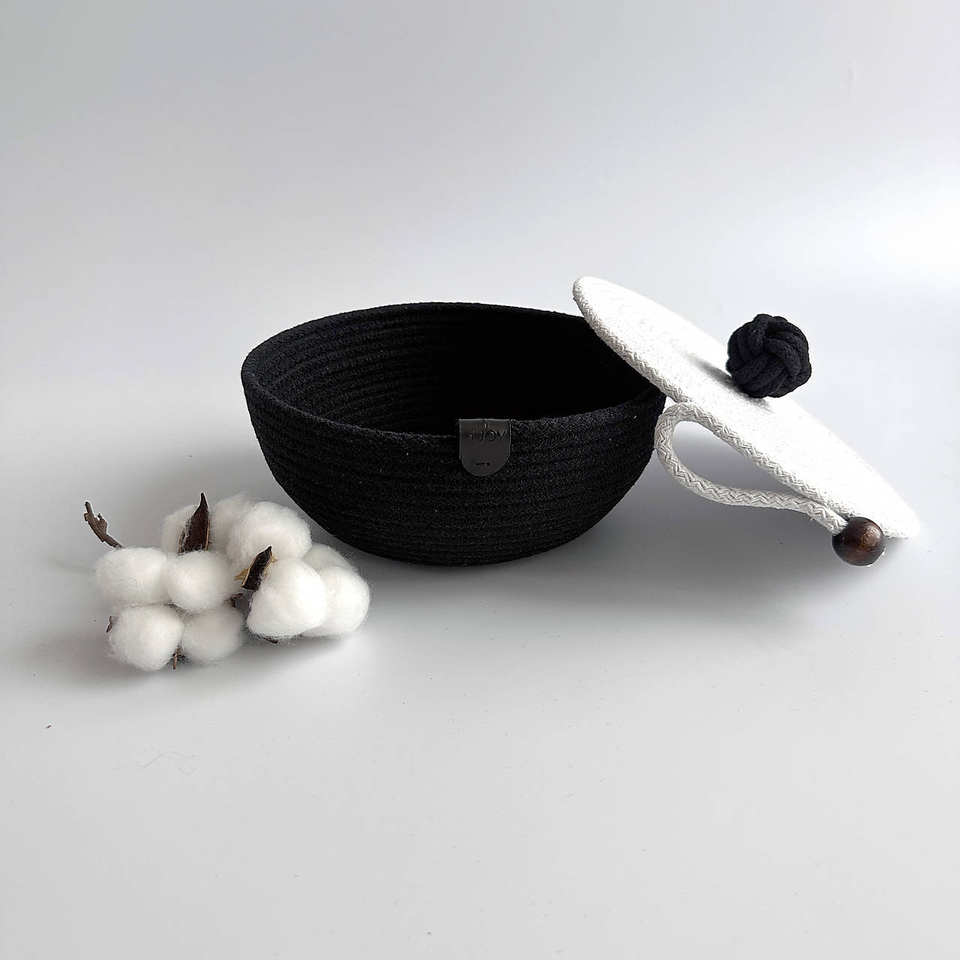 ตะกร้าเชือกฝ้ายทอที่ออกแบบได้น่าดึงดูดที่สุดพร้อมฝาปิดโบราณ ตะกร้าเก็บของเล่นผ้าฝ้ายทอคุณภาพสูงสําหรับขาย