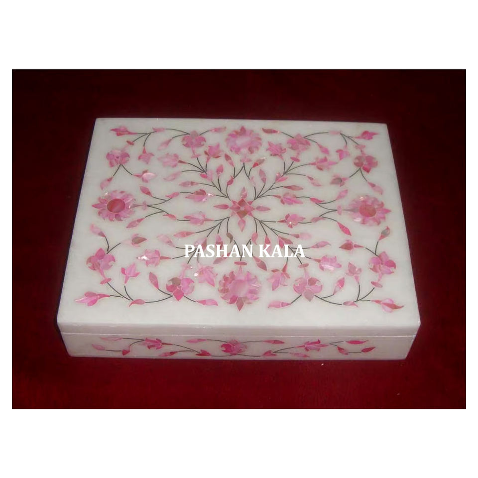 ที่น่าสนใจมากที่สุดหินอ่อนสีขาวสีชมพูแม่ของไข่มุกดอกไม้ฝังออกแบบเป็นรูปสี่เหลี่ยมผืนผ้าเครื่องประดับกล่องของขวัญในราคาที่ดีที่สุด