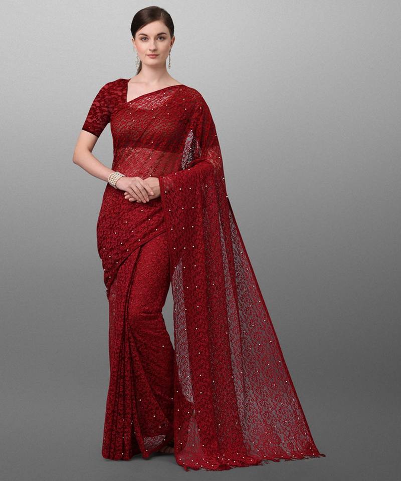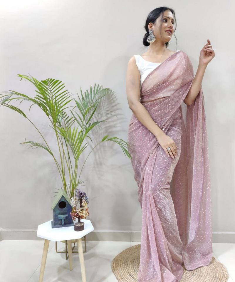 ชุดส่าหรีสำหรับใส่ในงานเทศกาลแฟชั่นส่าหรีงานทำจากหินผ้าไหม Vichitra พร้อมเสื้อชิ้นสำหรับผู้หญิงอินเดียส่าหรี