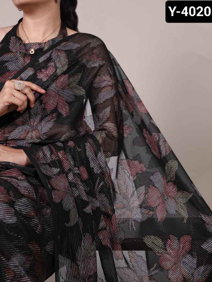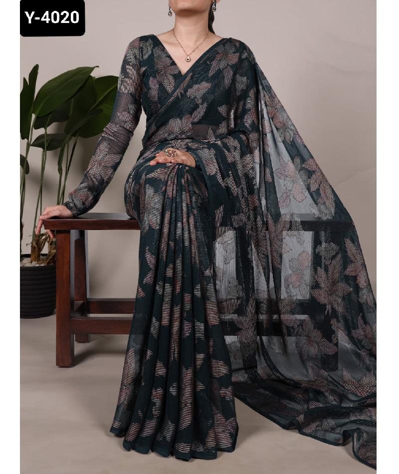 เสื้อลายดอกไม้ที่สวยที่สุดบราสโซส่าหรีอินเดียปากีสถานเสื้อผ้าสำหรับเทศกาลสบายๆ Saree ผสมดอกไม้ Viscose brasso