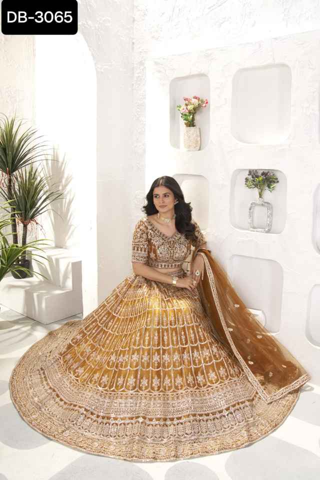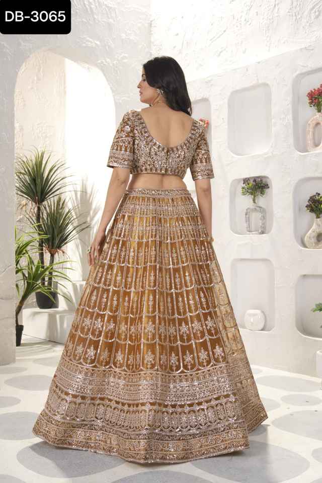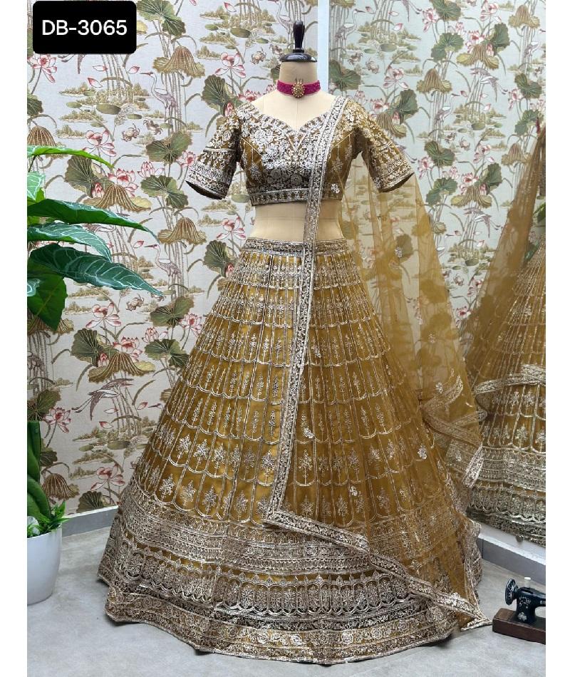 ชุดงานแต่งและงานแต่งที่หนักที่สวยที่สุดผ้าแบบตาข่ายวัสดุ lehenga choli พร้อมชุดเย็บปักตาข่าย