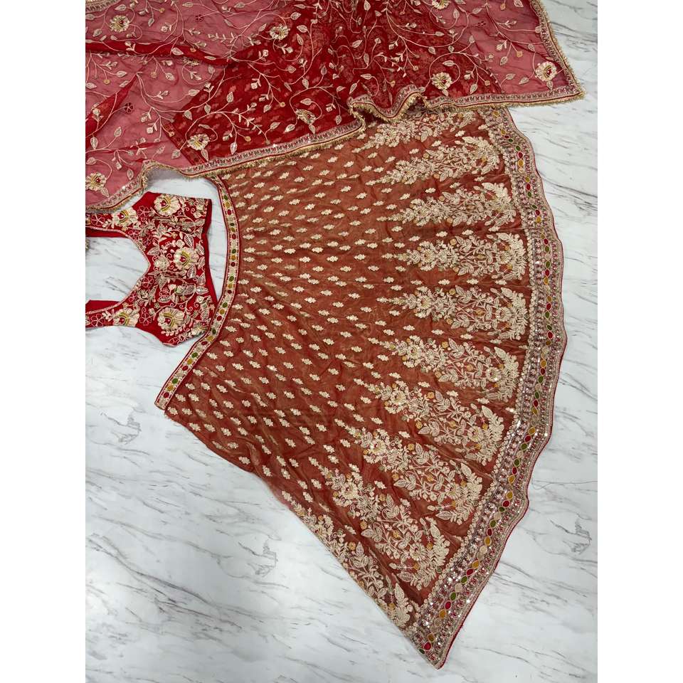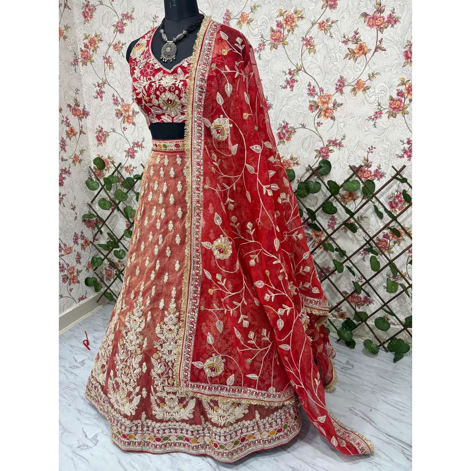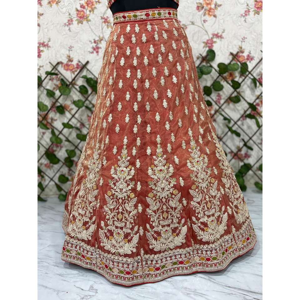 ชุดเลเฮนกาโชลีสีส้มไซส์ M ดีไซน์ใหม่ล่าสุดจากเฮรา ครีเอชั่น สวยที่สุดสำหรับผู้หญิง พร้อมงานปักสุดประณีต