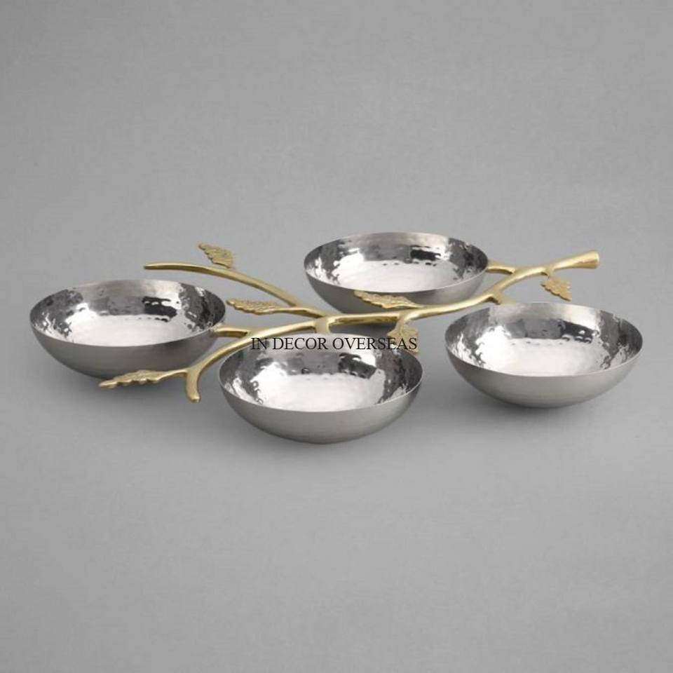 ชามโลหะเคลือบเงาสีเงินเคลือบเงาดีไซน์รูปใบไม้ชุบทองดูสวยที่สุดหรูหรา