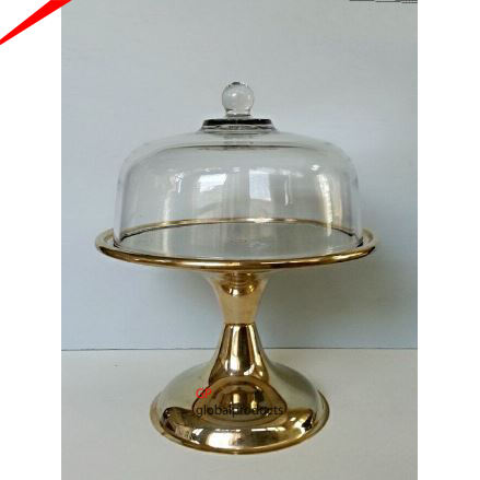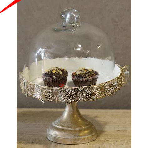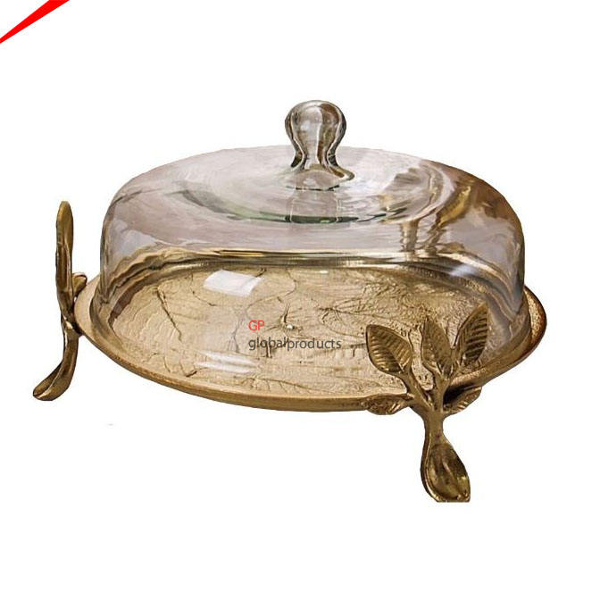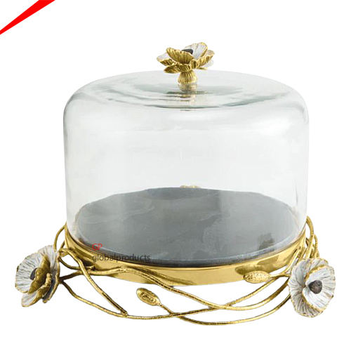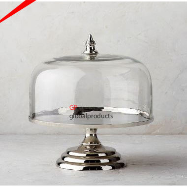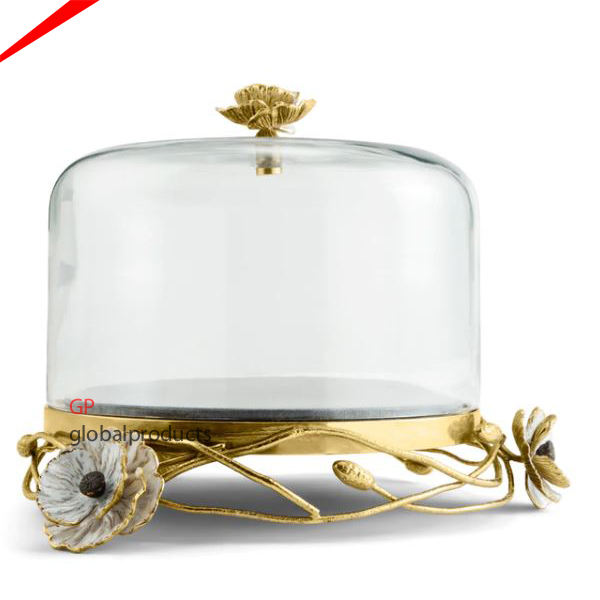 Most Beautiful Round Cake Stand with Decorative Flower Base and Glass Dome for Wedding Hotel Decoration Cake Display Stand