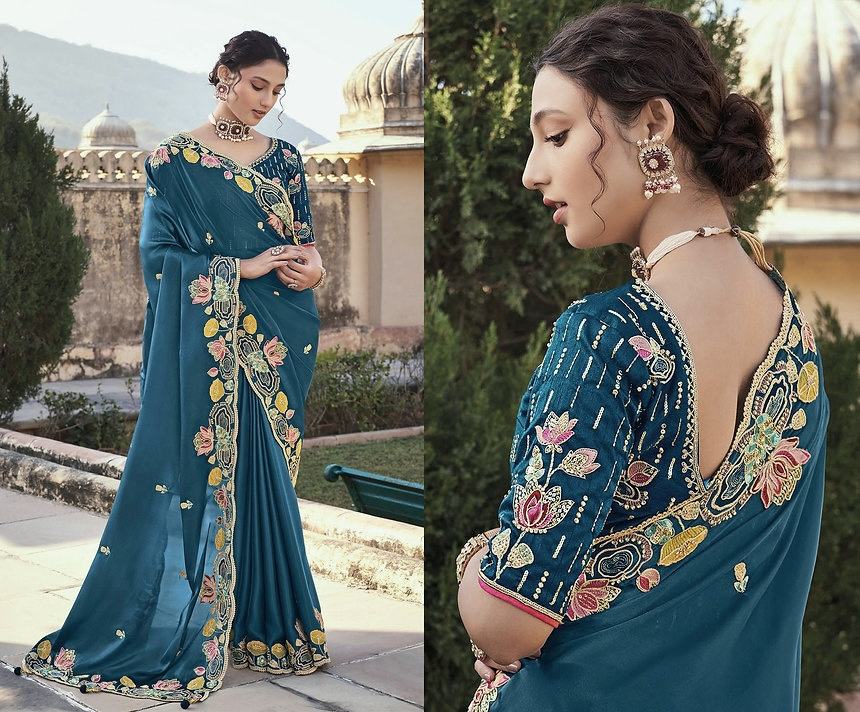 คอลเลกชั่นส่าหรีปักลายลำดับที่สวยที่สุดสำหรับผู้หญิงชุดแต่งงานและงานเลี้ยงเจ้าสาว