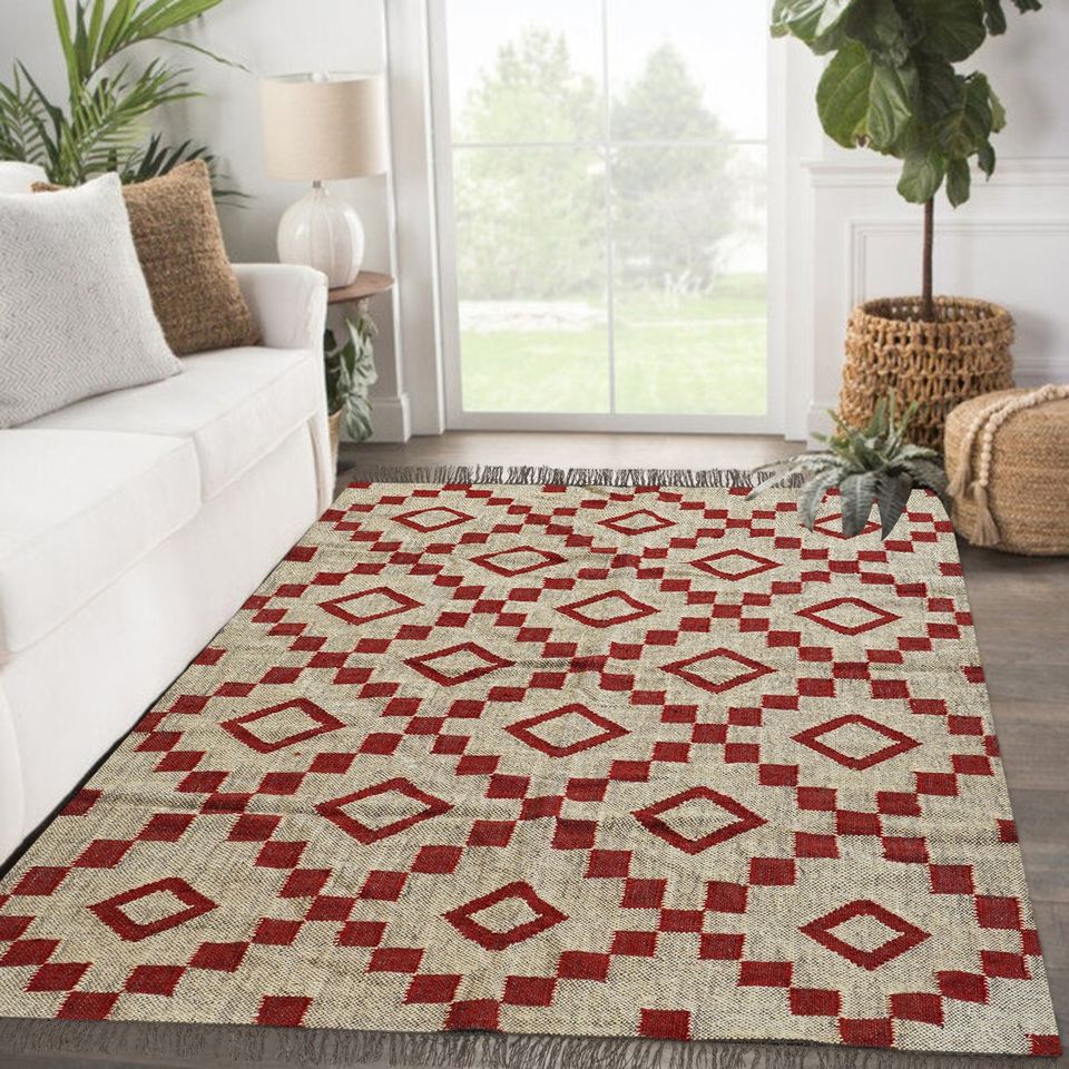 พรมปอกระเจาขนสัตว์ถักลายเรขาคณิตสำหรับบ้านโรงแรมห้องนั่งเล่น
