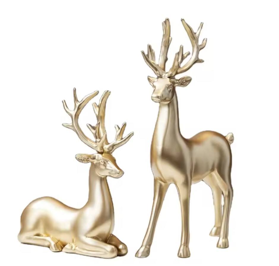 รูปปั้นกวางเรนเดียร์ป่าที่สวยที่สุดตกแต่งด้วยทองคำสำหรับสวนในบ้าน