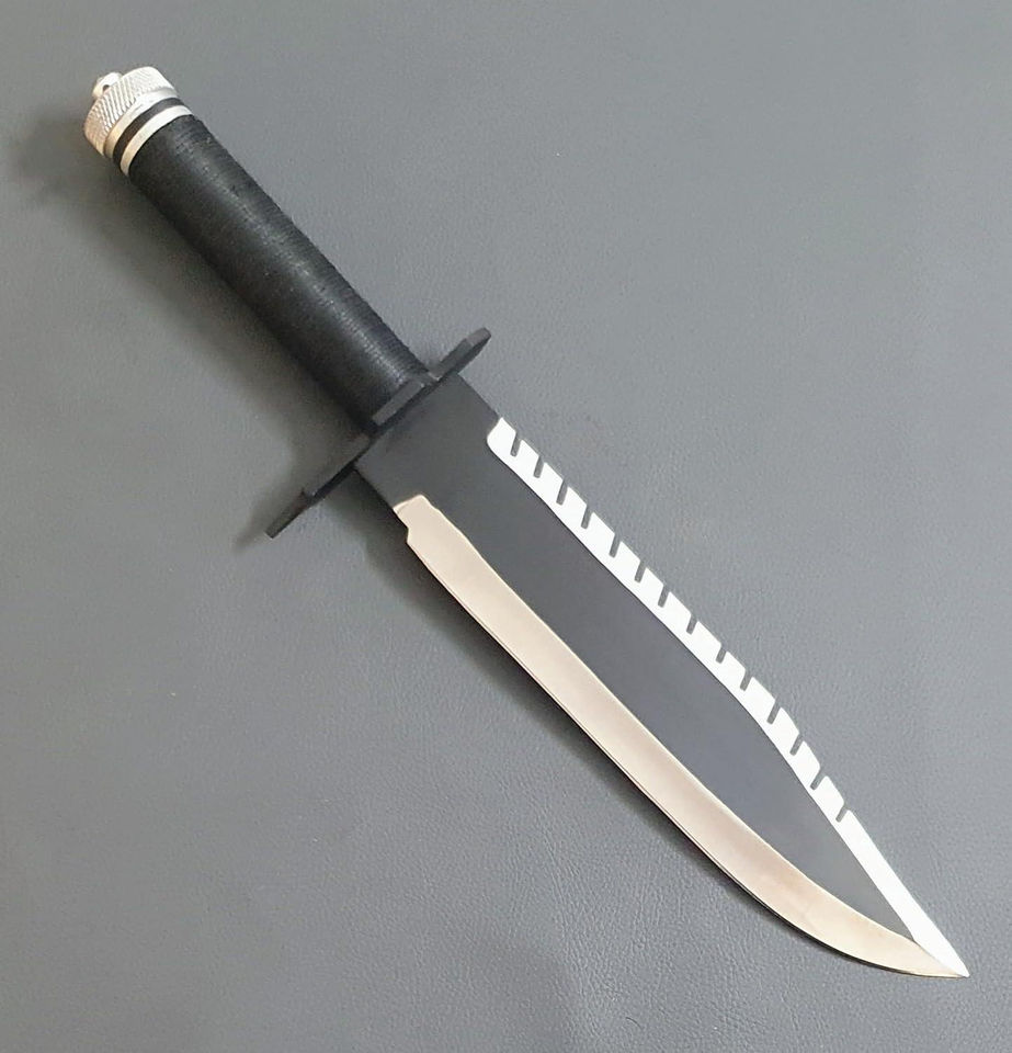 มีดเอาตัวรอดกลางแจ้งขนาด 12 นิ้ว | ใบมีดเหล็กกล้าไร้สนิมแบบ Fixed Blade ขอบหยัก ปลายแบบ Clip Point ผลิตตามสั่ง (OEM) ปรับแต่งได้ ด้ามแบบ Dual Tone Sawback Spine