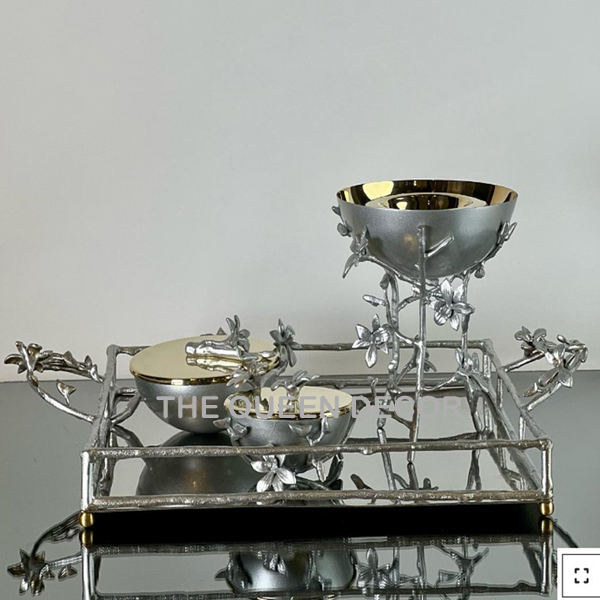 เครื่องหอมอลูมิเนียมสำเร็จรูป3ชิ้นถาดทรงสี่เหลี่ยมพร้อมชุดแก้ว