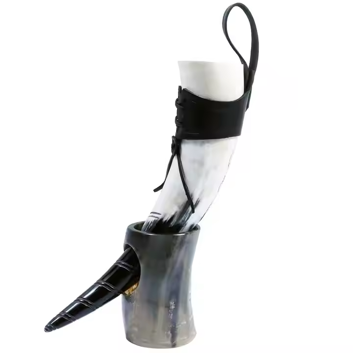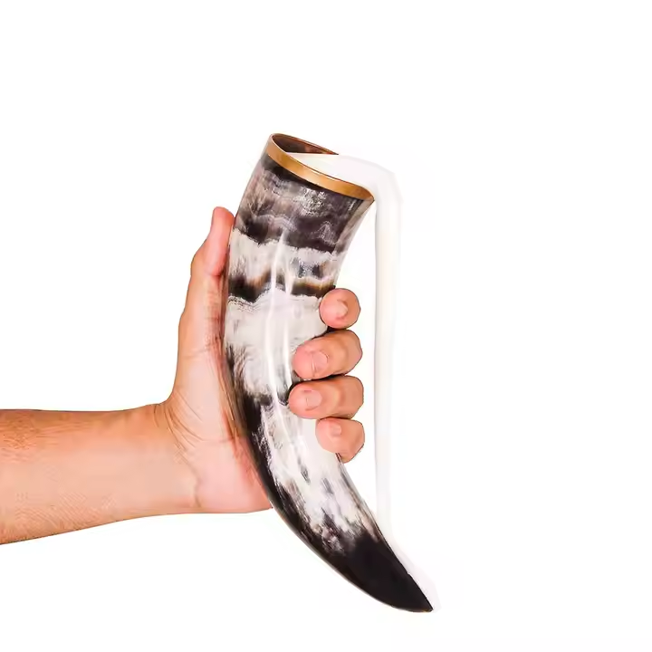 ฮอร์นสำหรับดื่มที่รั่วซึมมีความต้องการมากที่สุด475มล. 100% ทำมือธรรมชาติสีดำและสีขาวเครื่องดื่มไวกิ้งบาร์
