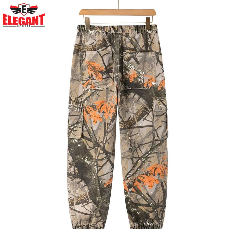 กางเกงสเวตแพนท์ผ้าแคนวาสลายพรางต้นไม้แบบกำหนดเองสำหรับผู้ชาย ระบายอากาศ แห้งเร็ว เอวยางยืด กางเกงสั่งทำพิเศษ