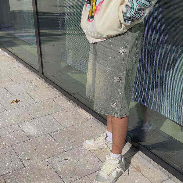 กางเกงขาสั้นผ้ายีนส์ขาสั้นสำหรับผู้ชายกางเกงขาสั้นแนวสตรีทผ้าเดนิมสำหรับฤดูร้อนมี100%