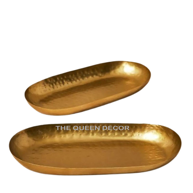 ถาดสแตนเลสทรงกลมเคลือบเงาสำหรับตกแต่งที่สร้างสรรค์ทำด้วยมือสุดหรู