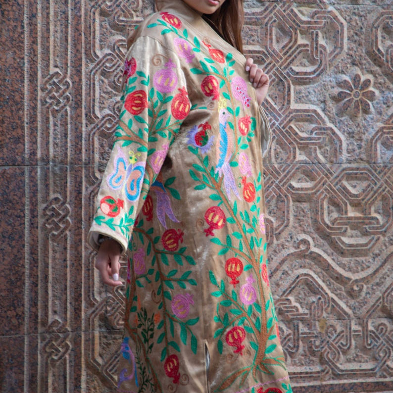 Most Elegant Designer Boho Chic Suzani Kimono Winter Bohemian European Style Beach Robe Long Jacket Stripe Embroidery Cotton