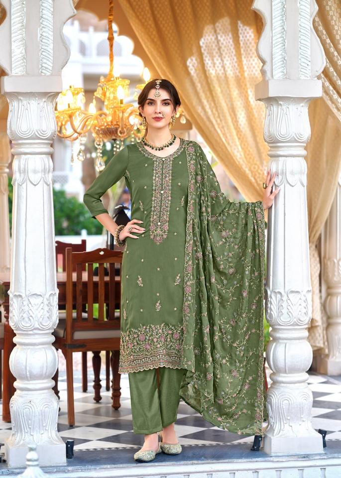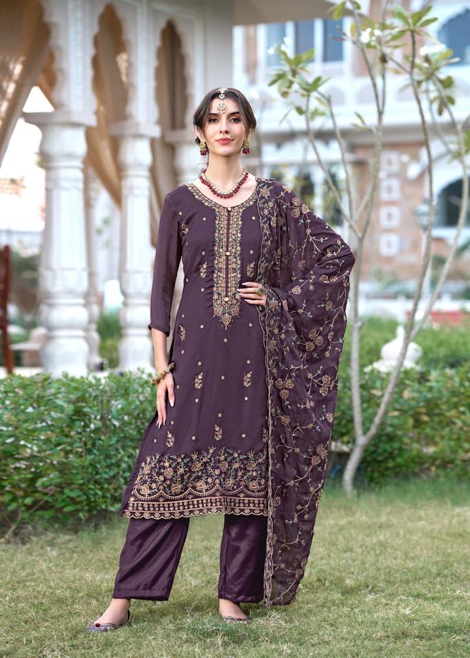 ชุดซาลวาร์ผ้าไหมผ้าชินรอนทันสมัยและดูปตาพร้อมงานปัก
