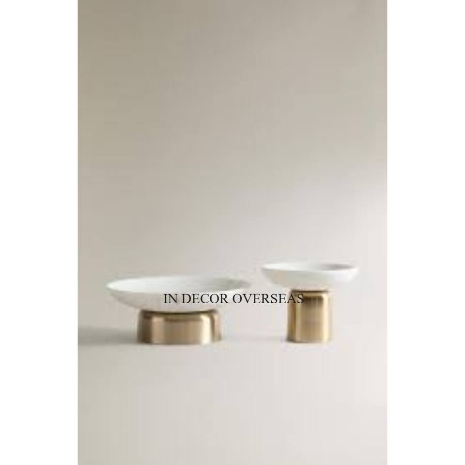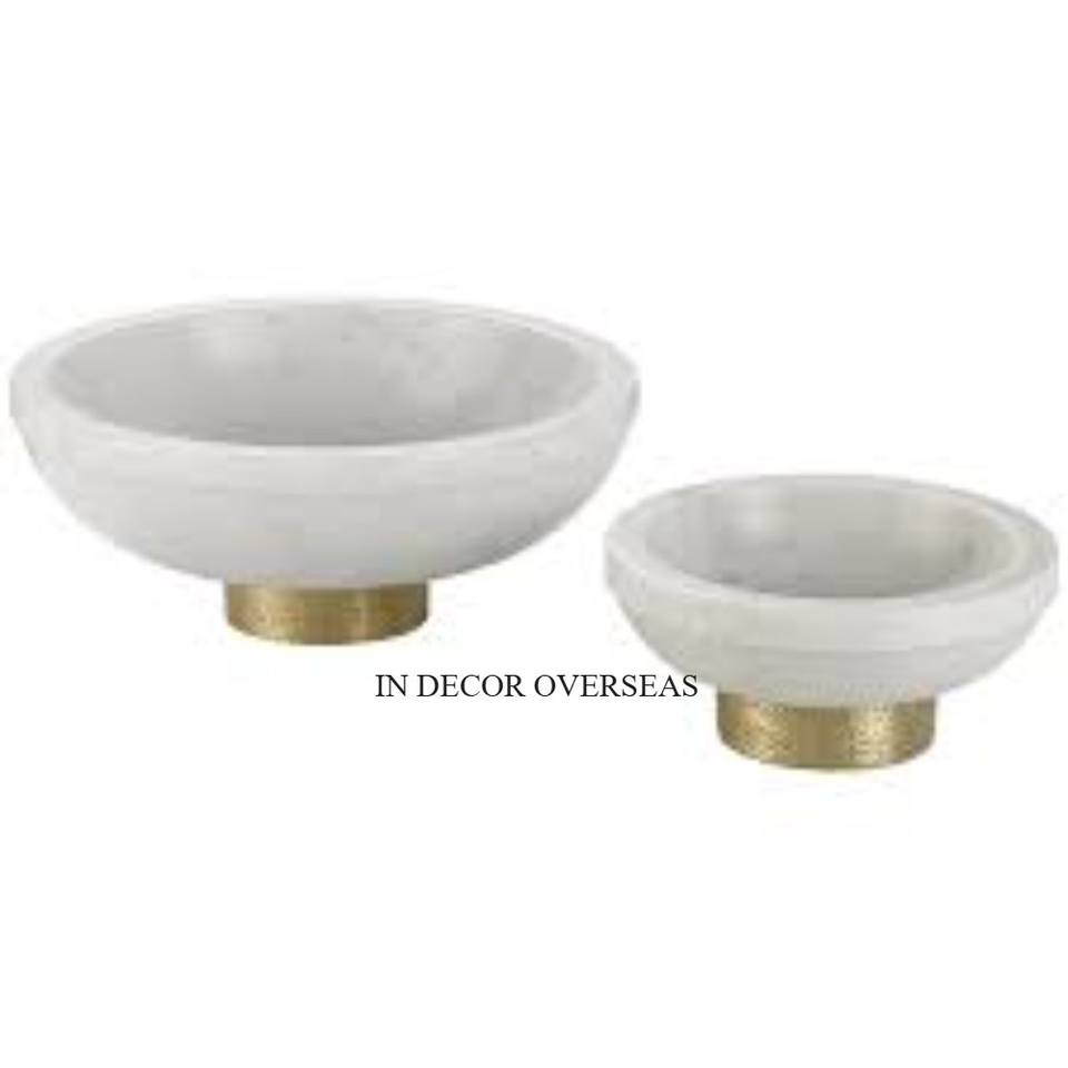 ชามทรงกลมทำจากหินอ่อนสีขาวพร้อมฐานโลหะชุบทองดีไซน์เนอร์สุดหรู
