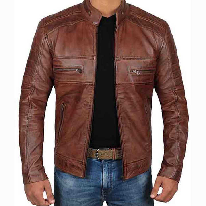 แจ็คเก็ตหนังผู้ชายขายดีที่สุด หนังแกะแท้ สไตล์วินเทจคลาสสิก แจ็คเก็ตหนังสีน้ำตาลสำหรับผู้ชาย
