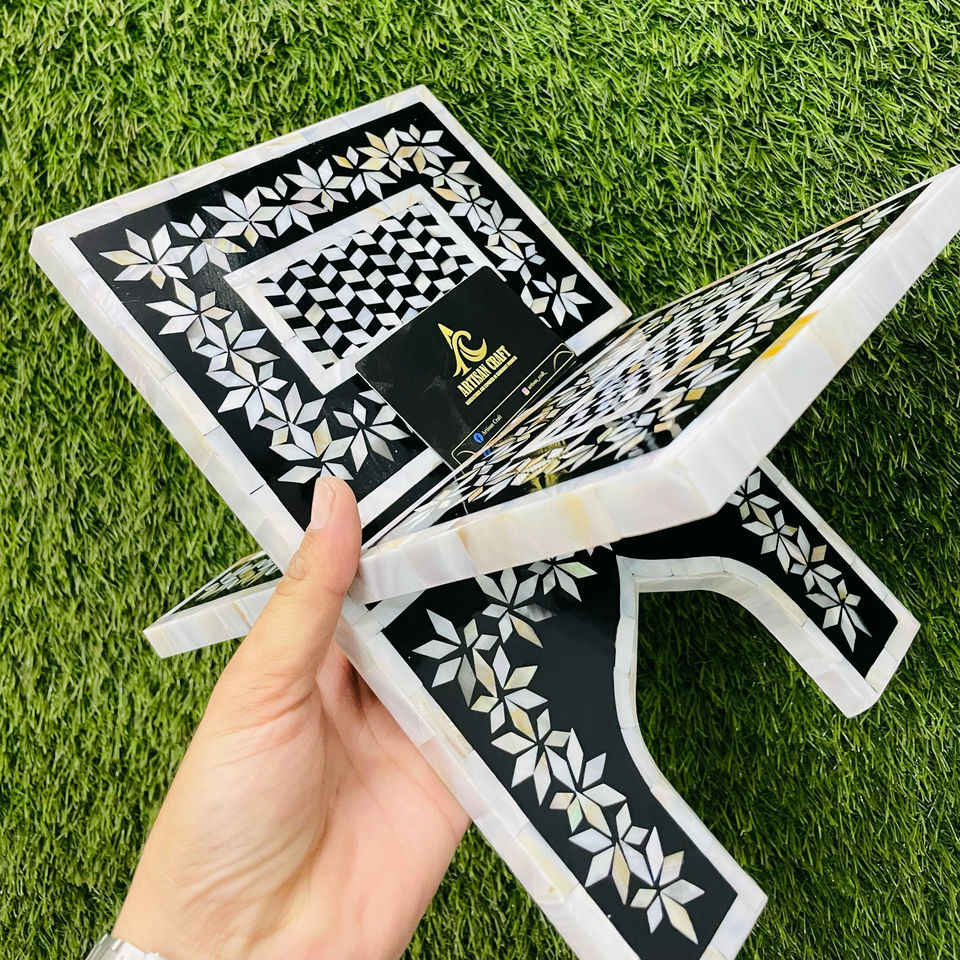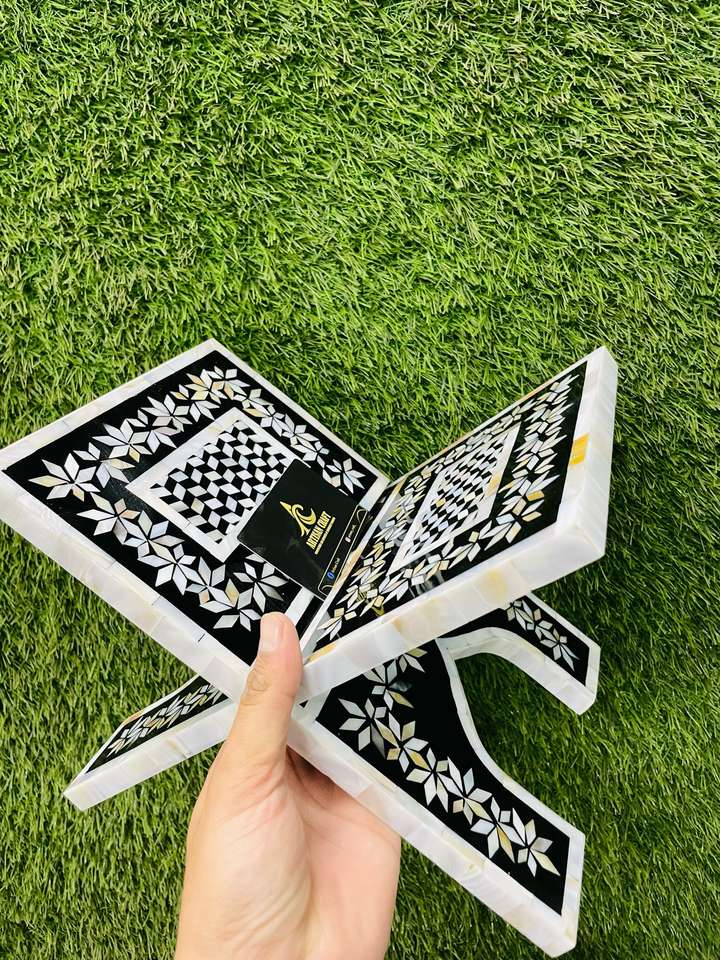 ที่ตั้งหนังสือคัมภีร์กุรอานใหม่สุดหรูเปลือกหอยมุกคุณภาพระดับพรีเมี่ยมเป็นมิตรต่อสิ่งแวดล้อมดีไซน์ความรักของนางฟ้าจากงานฝีมือช่างฝีมือจากอินเดีย
