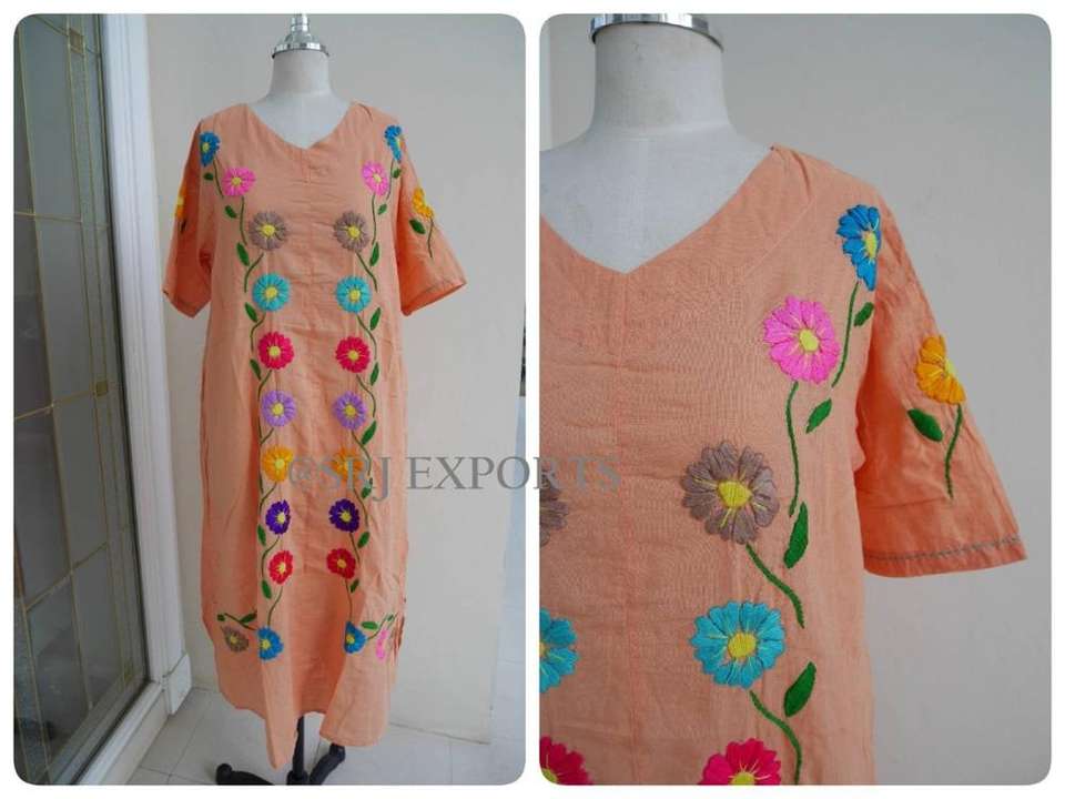 เดรสคอตตอนแนววินเทจคอวีปักลายดอกไม้สำหรับผู้หญิง,เดรสผ้าคอตตอนแนววินเทจชายหาดร้อนแรงที่สุดสำหรับฤดูใบไม้ผลิ