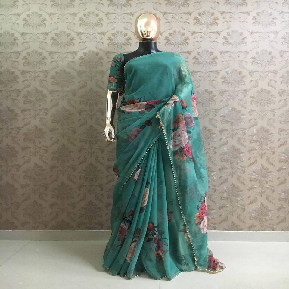 ชุดส่าหรีพิมพ์ลาย Georgette กับเสื้อชิ้นอินเดียสำหรับผู้หญิงส่าหรี