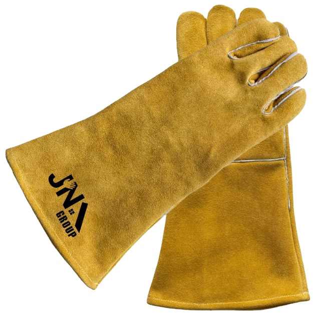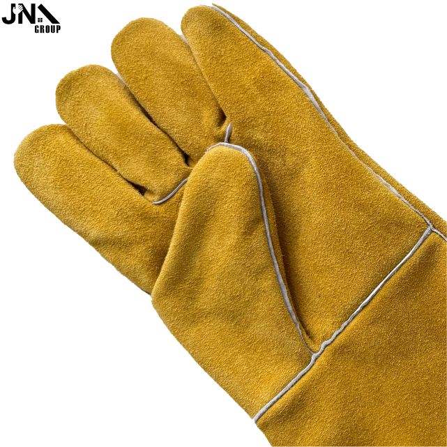 ถุงมือเชื่อมหนังวัวแบบแยกนิ้วยาว14นิ้วถุงมือเชื่อมสำหรับงานหนักงานทำสวน