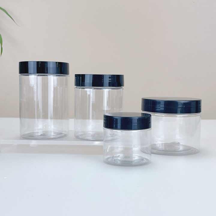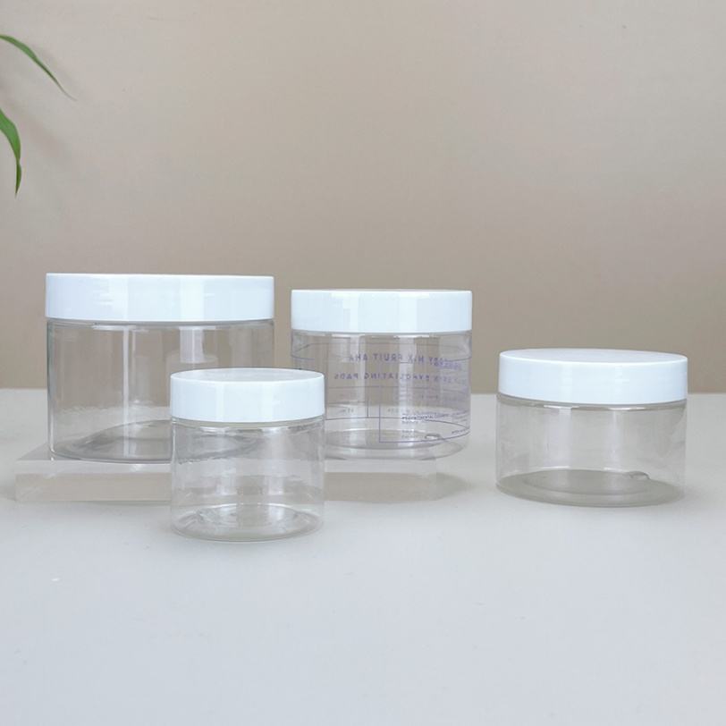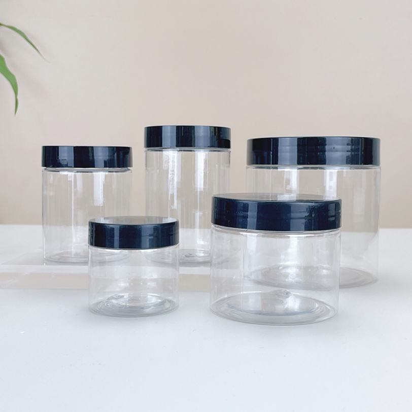 ขวดพลาสติก PET ใสทรงกลมขนาด 1 ออนซ์ 2 ออนซ์ 3 ออนซ์ 4 ออนซ์ 8 ออนซ์ ยอดนิยม พร้อมฝาปิด สำหรับบรรจุภัณฑ์อาหาร เกรดอาหาร เหมาะสำหรับเซรั่มบำรุงผิวและแป้งฝุ่น