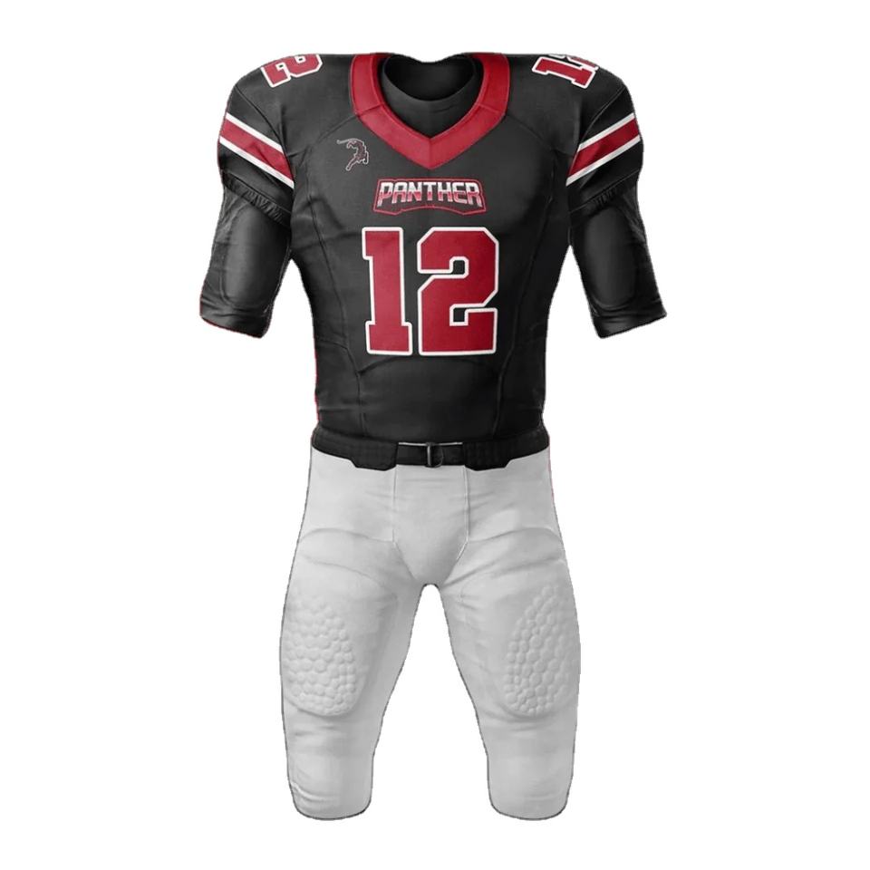 ชุดยูนิฟอร์มอเมริกันฟุตบอลชายยอดนิยม ผ้ายืดสแปนเด็กซ์/โพลีเอสเตอร์ ไซส์พลัส แห้งเร็ว รับผลิตแบบ OEM ออกแบบโลโก้ของคุณเองได้ทุกแบบ