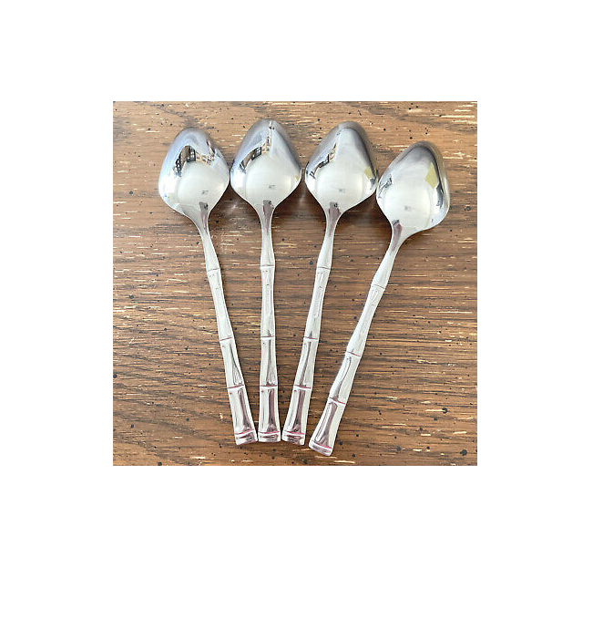 ช้อนทองเหลืองโบราณรูปทรงด้ามไม้ไผ่ล่าสุดสำหรับรับประทานอาหารค่ำในบ้านดีไซน์หรูหรา