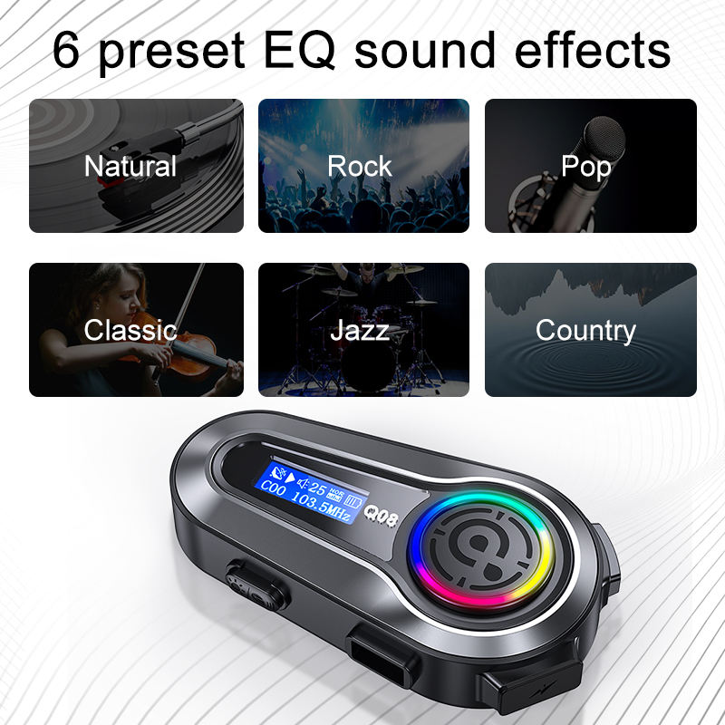 ชุดหูฟังบลูทูธสำหรับหมวกกันน็อค รุ่นยอดนิยม Q08 พร้อมจอ LCD แฮนด์ฟรี สำหรับรถจักรยานยนต์ รองรับ OEM/ODM เล่นเพลงได้