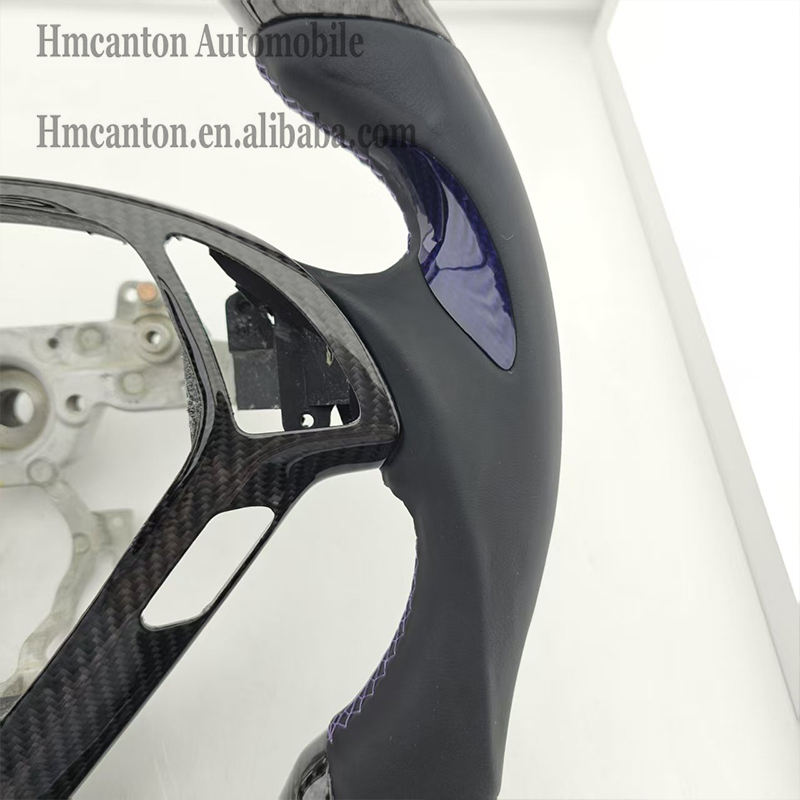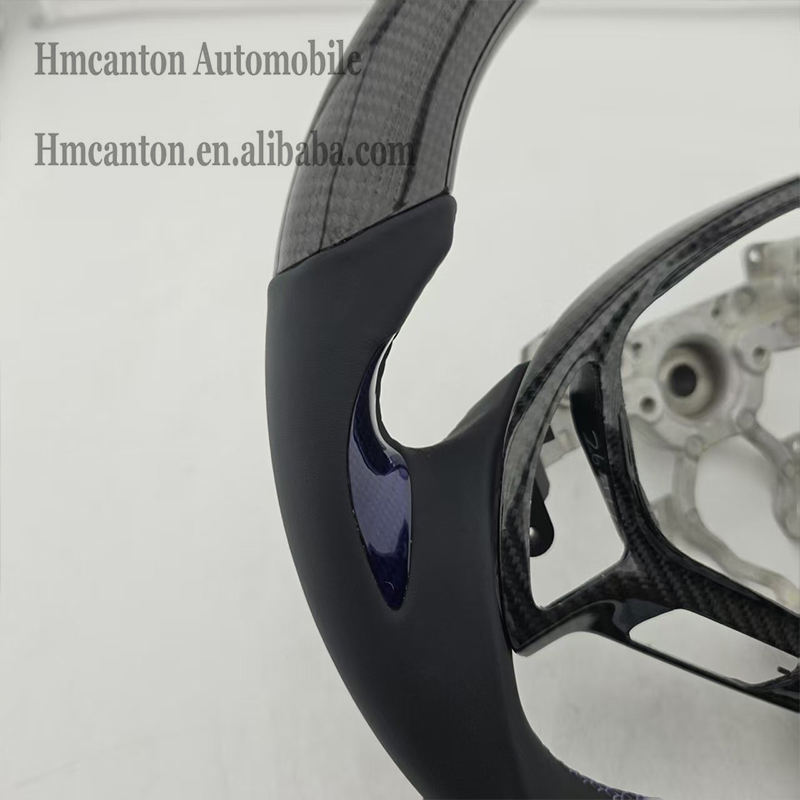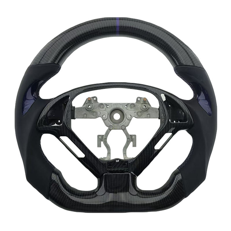 พวงมาลัยรถแบบมือจับด้านบนทำจากหนังคาร์บอนไฟเบอร์สำหรับ G37 G27 Infiniti