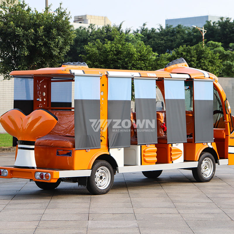 รถบัสไฟฟ้าการ์ตูนสำหรับนักท่องเที่ยวชมสถานที่ท่องเที่ยวในสวนสาธารณะและรีสอร์ท รถมินิบัสแบบกำหนดเองสำหรับผู้ใหญ่และเด็ก