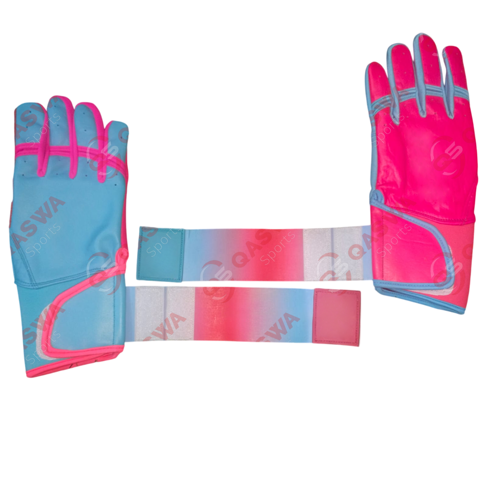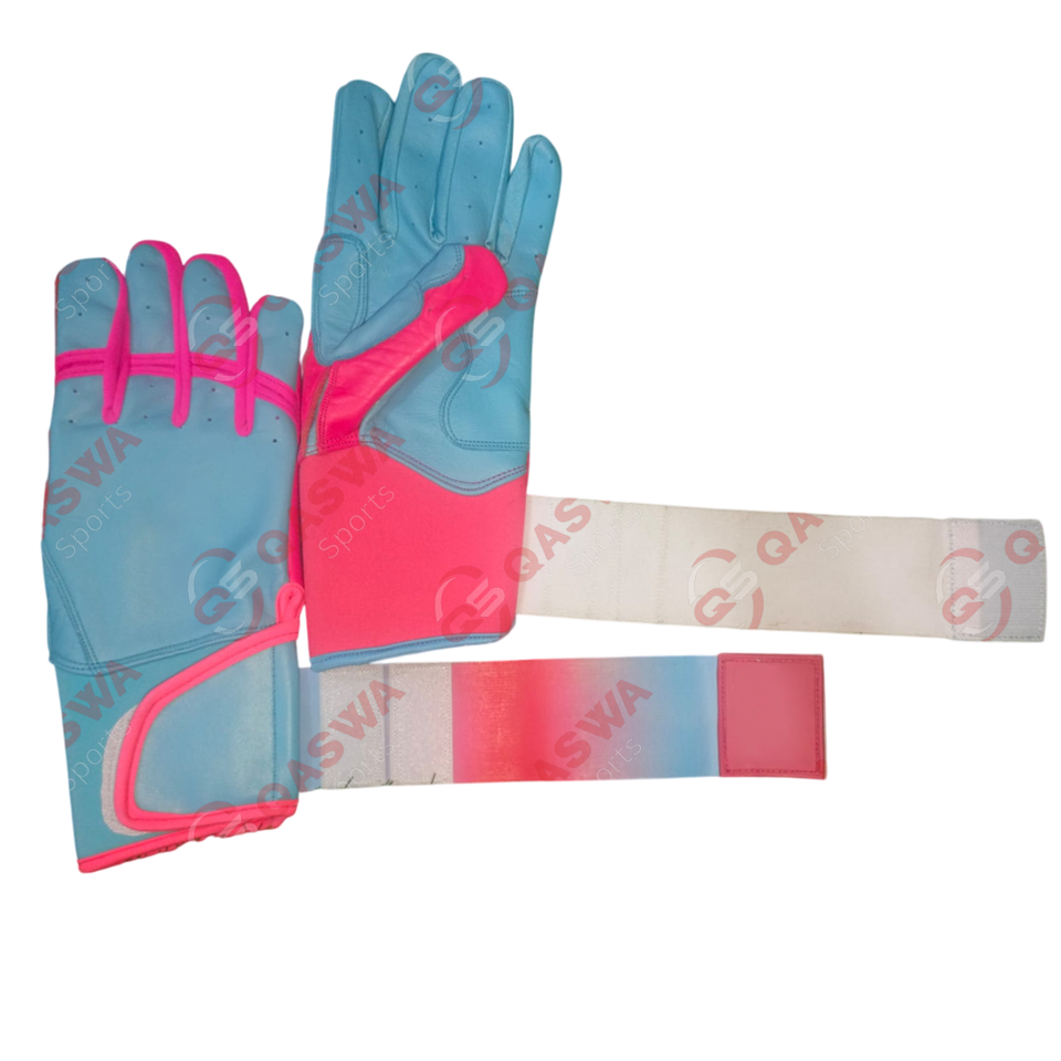 ถุงมือตีหนังแบบยาวคอมโบสีชมพูและสีน้ำเงินอมเขียวออกแบบโลโก้ได้ตามต้องการ
