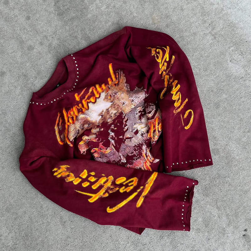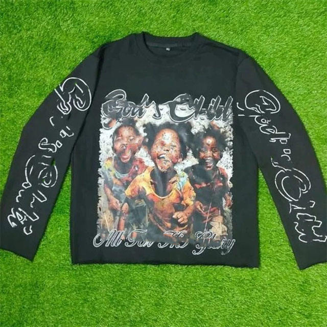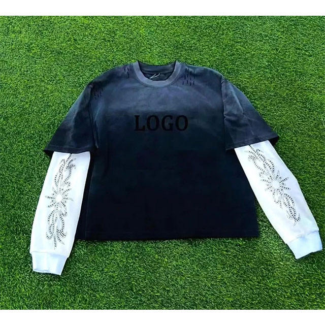 เสื้อยืดสองชั้นยอดนิยมสำหรับผู้ชาย คุณภาพสูง ผ้าฝ้าย 100% สกรีนลาย คอกลม แขนยาว ผ้าถัก