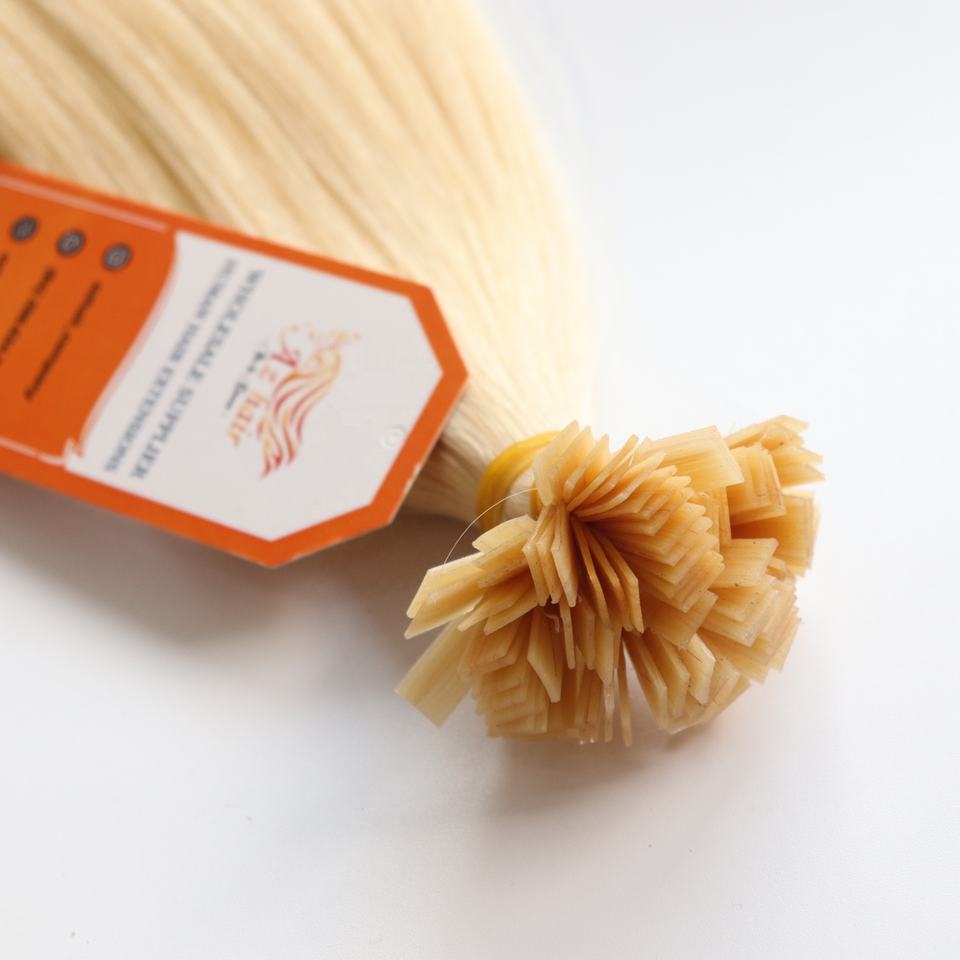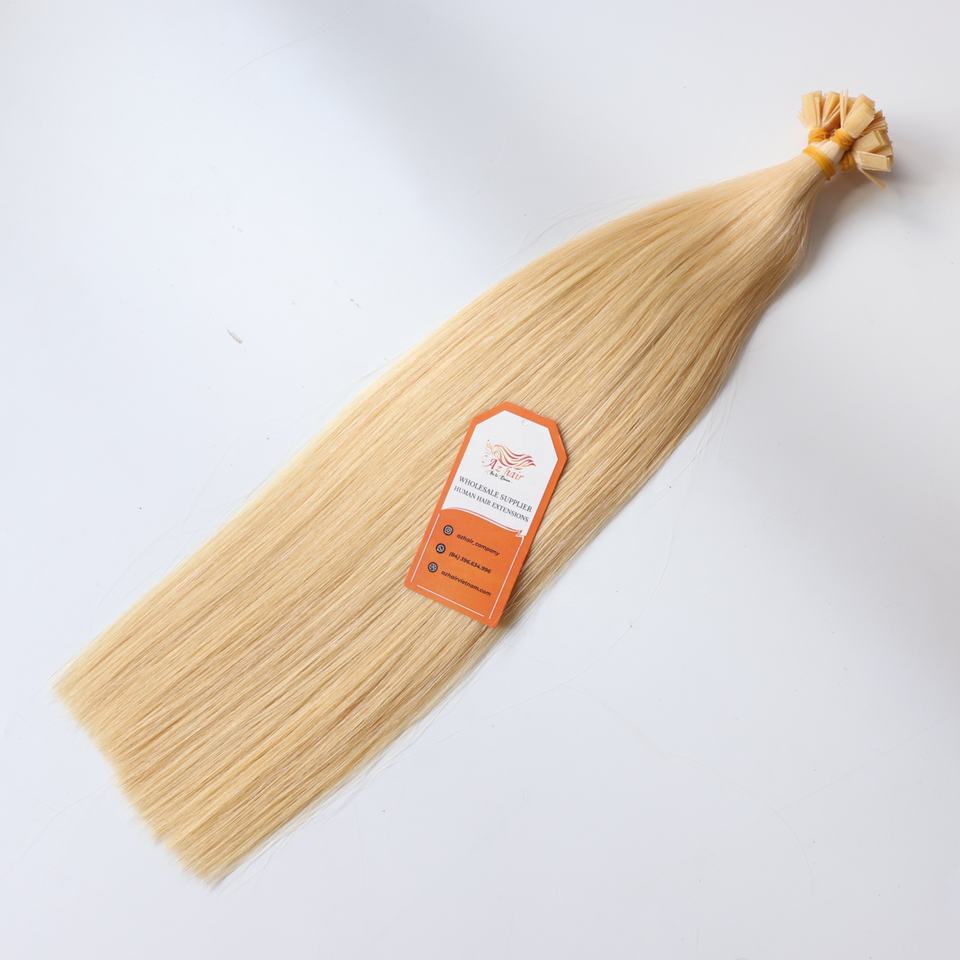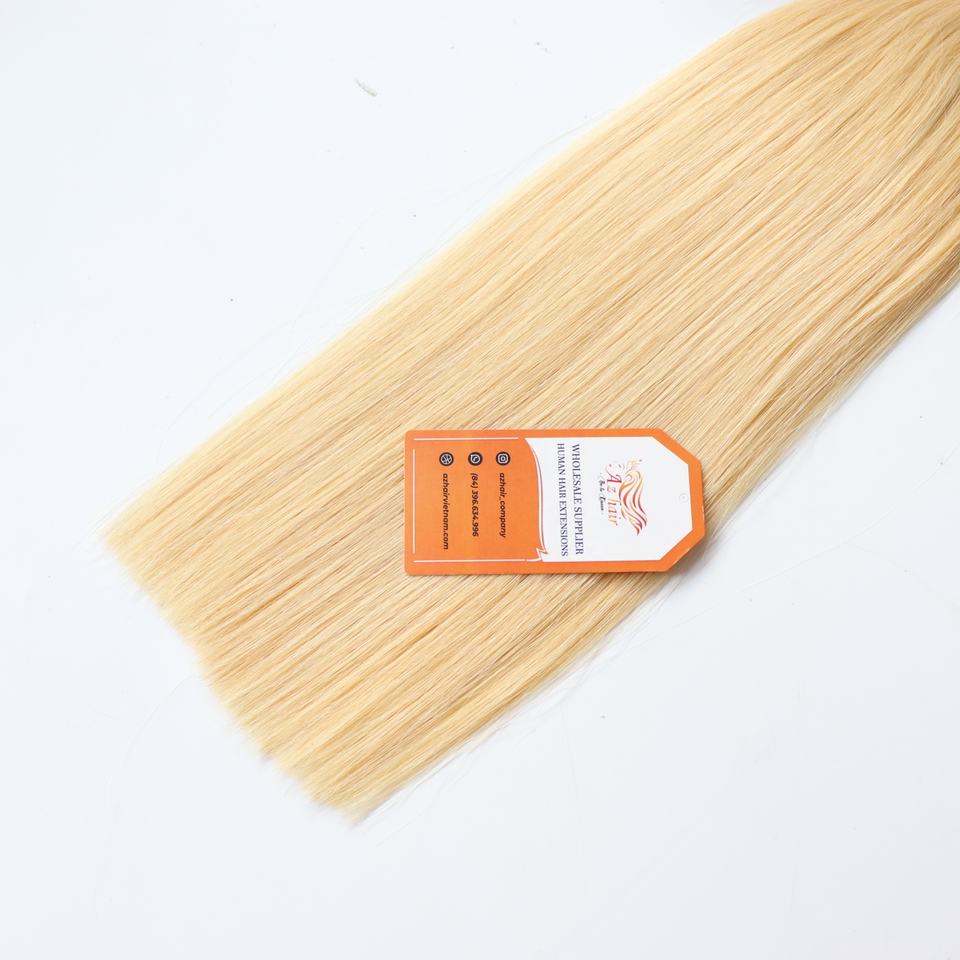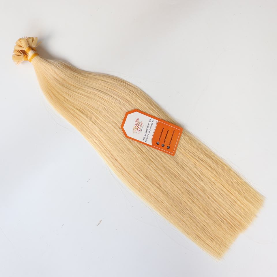 ต่อผมแท้เวียดนามแบบเส้นเดี่ยวปลายแบน สีบลอนด์อ่อน 100% คุณภาพสูงจากโรงงาน ขายส่งยอดนิยม