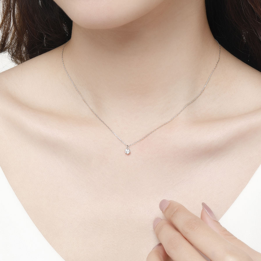 สร้อยคอเพชรเม็ดเดี่ยวทองคำขาวแท้ 18K ดีไซน์มินิมอลเรียบง่าย ยอดนิยม ประดับเพชรธรรมชาติ สำหรับผู้หญิง
