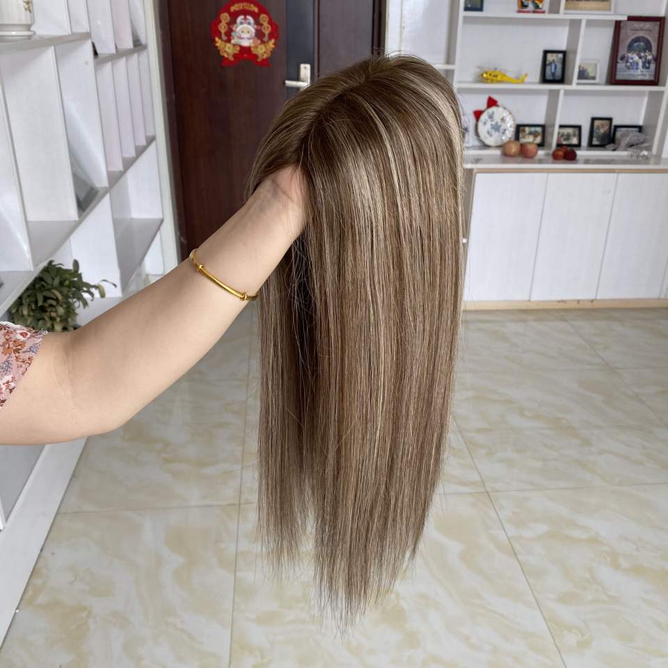 วิกผมคนแท้สีบลอนด์ผูกไว้บนยอด YF-2301 # RH3/12 5*6
