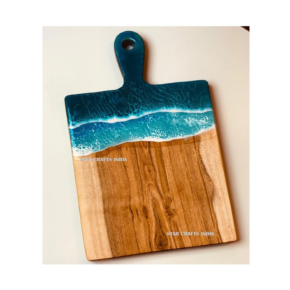 เขียงเสิร์ฟและตัดอาหารทรงสี่เหลี่ยมยอดนิยม ลายคลื่นทะเล ทำจากเรซิ่นและไม้ เหมาะสำหรับงานแต่งงานกลางแจ้งและเทศกาลคริสต์มาส