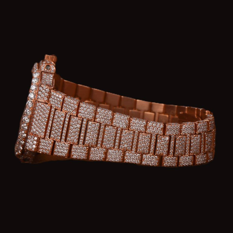นาฬิกาข้อมือผู้ชายทรงสี่เหลี่ยมยอดนิยม ประดับเพชรโมอิสซาไนต์เต็มหน้าปัด สไตล์ฮิปฮอป งานแฮนด์เมด ราคาไม่แพง