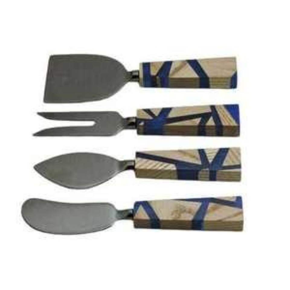 ชุดชีสและชุดช้อนส้อมมีด้ามจับทำจากไม้และเรซินสีเขียวดีไซน์หรูหราสไตล์ที่นิยมมากที่สุด3ชิ้น