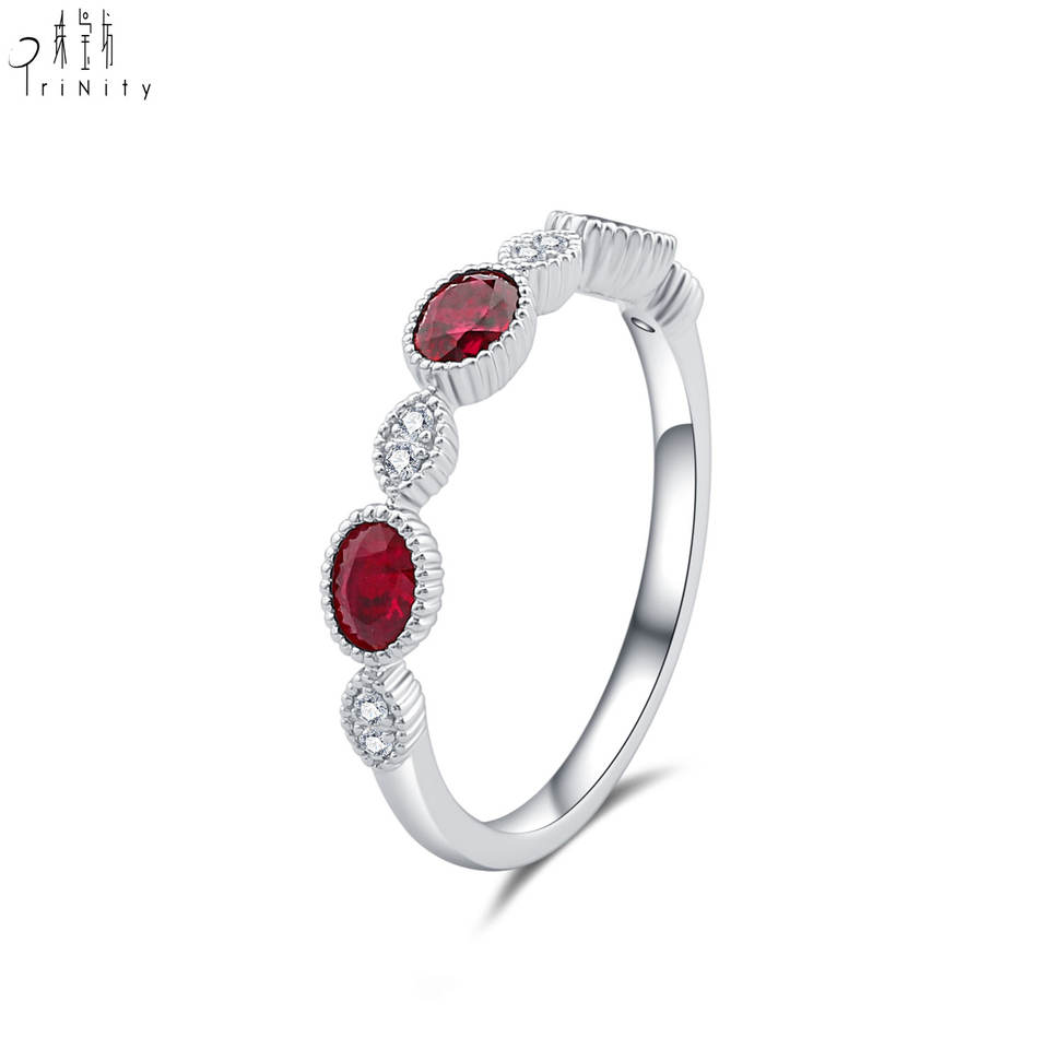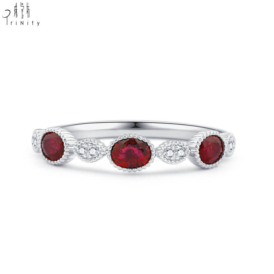 แหวนพลอยทับทิมสีแดงสด ทองคำขาวแท้ 18K สไตล์วินเทจสุดหรู เป็นของขวัญวันเกิดที่ได้รับความนิยมมากที่สุด