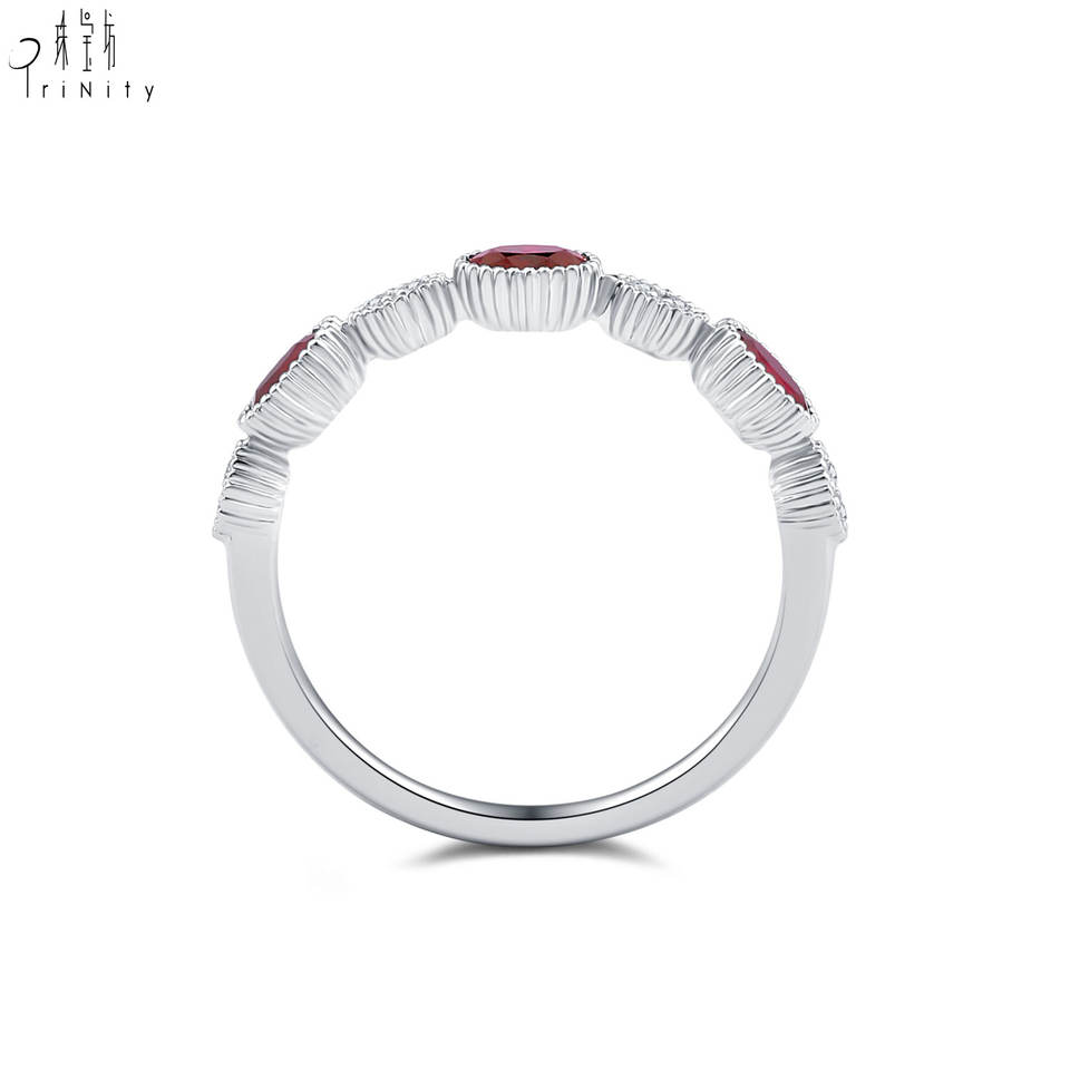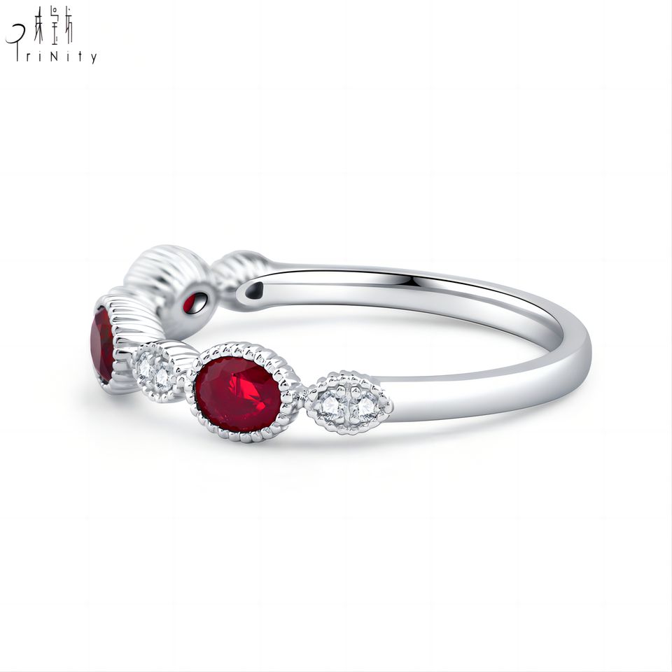 แหวนทองคำขาวแท้ 18K ประดับพลอยทับทิมสีแดงสด วินเทจ