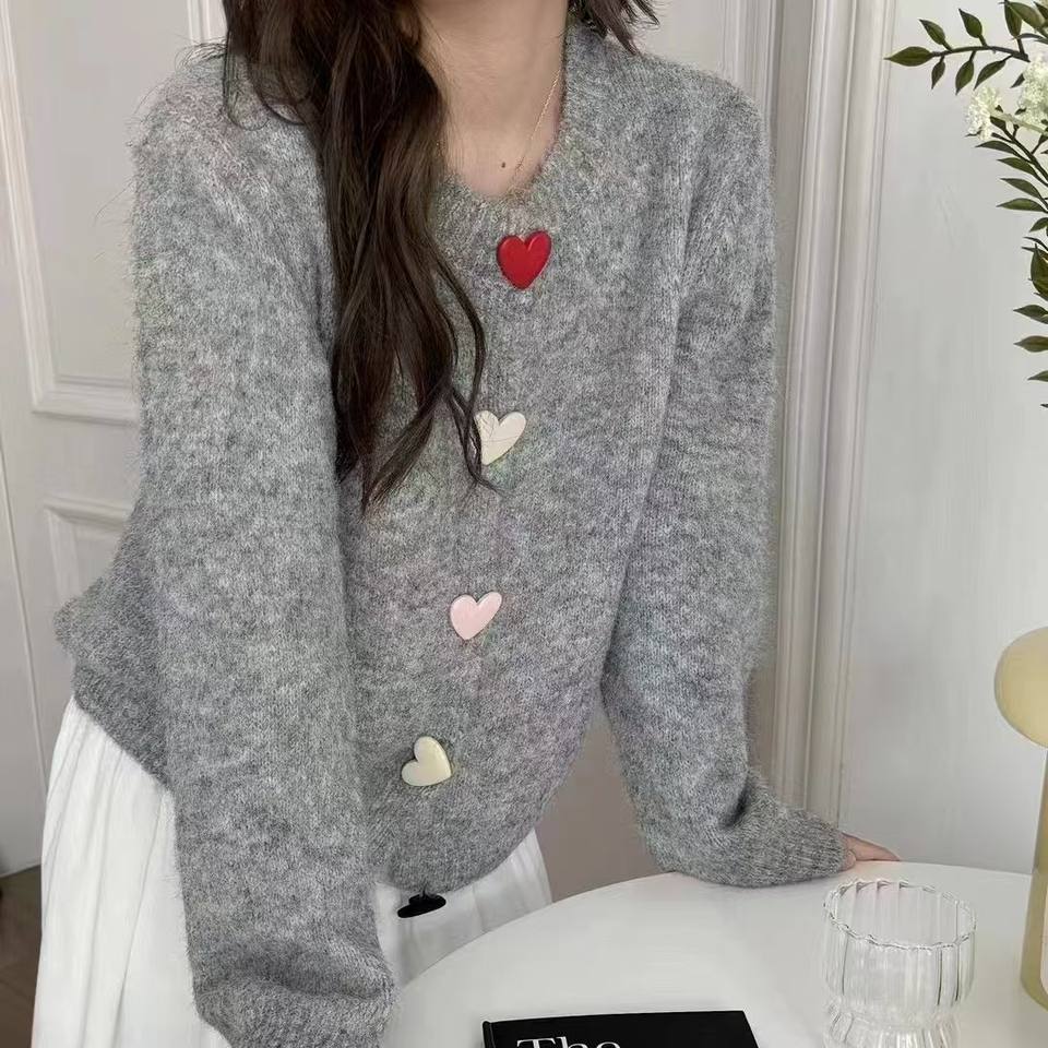 เสื้อโค้ทแคชเมียร์แขนยาวสำหรับผู้หญิงเสื้อสเวตเตอร์น่ารักสีลูกกวาดระบายอากาศได้ดีมีกระดุมหลากสีติดโลโก้ด้านหน้า