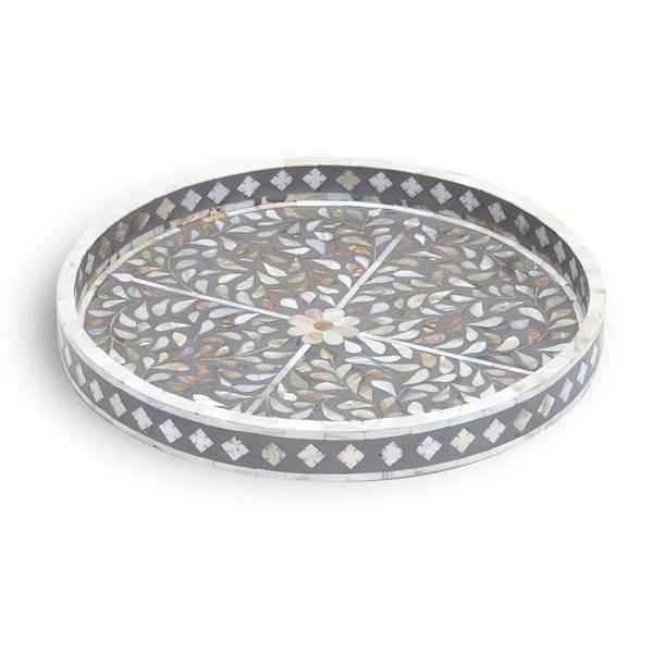 ถาดไม้ฝังมุกยอดนิยมสำหรับเสิร์ฟอาหารตกแต่ง ใช้ในร้านอาหาร โรงแรม บ้าน และสวน