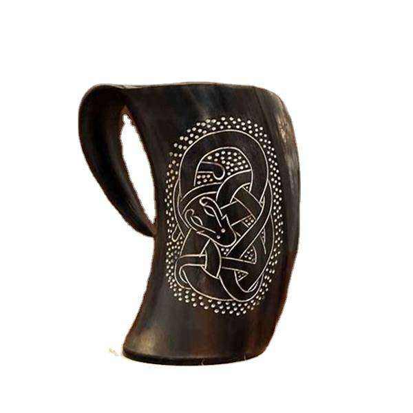 แก้วน้ำทำจากวัสดุออร์แกนิกคุณภาพสูง ทนทาน ลายเลียนแบบเขาควายโบราณ แก้วน้ำแบบดั้งเดิม แก้วเสิร์ฟเครื่องดื่ม แก้วแกะสลักด้วยมือ