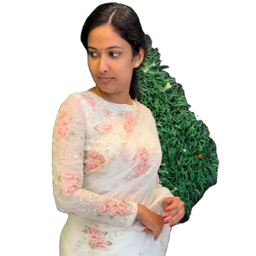 ผ้าไหมส่าหรีสำเร็จรูปสำหรับผู้หญิงจากอินเดีย ลายดอกไม้ประดับด้วยหิน งานฝีมือประณีต เหมาะสำหรับงานแต่งงานและงานปาร์ตี้ มีจำหน่ายในบูติกอินเดีย ค้นหาได้มากที่สุด