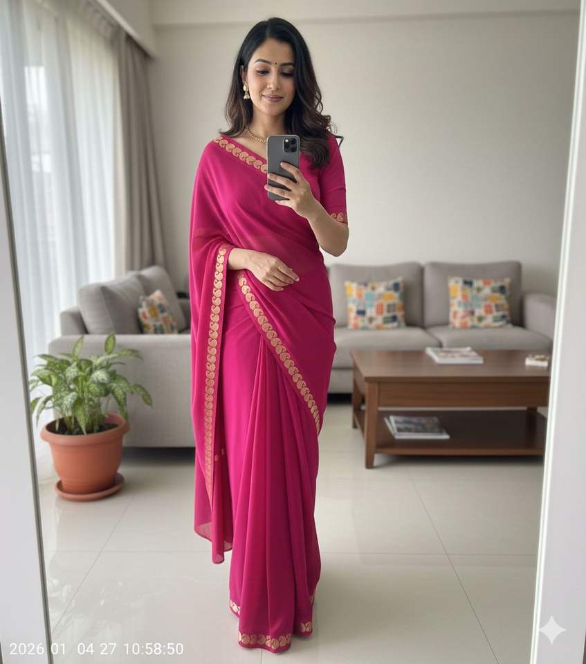 ผ้าซารีอินเดียสำเร็จรูปสำหรับผู้หญิง ผ้าวิสโคสเครปจอร์เจียต์ ผ้าไหม สำหรับงานแต่งงานหรืองานเลี้ยง แบบหนา ไม่มีลายพิมพ์ ยี่ห้อซายูร์ยา สินค้าขายดี